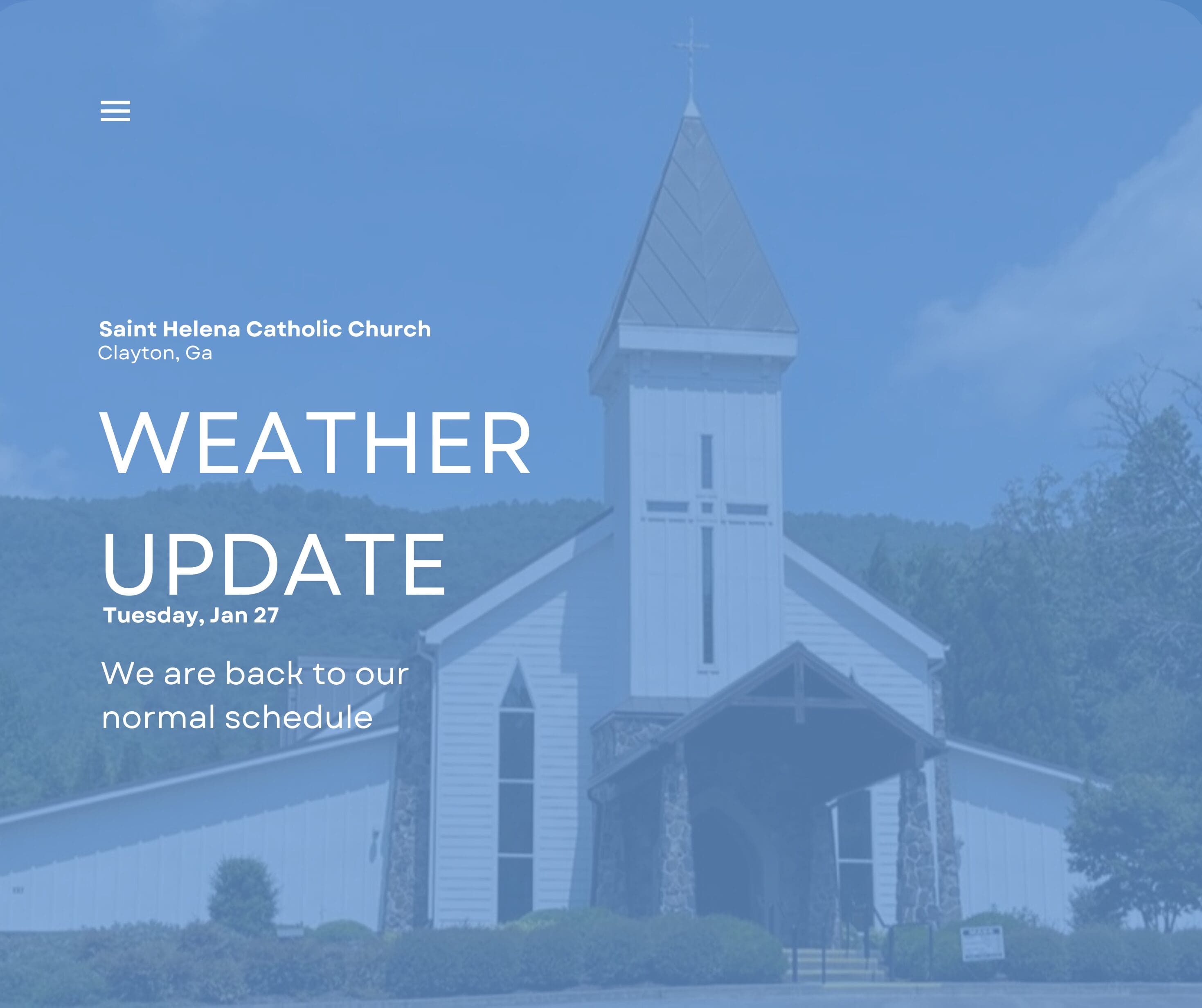 Good news! The streets are clear of ice, and the parish office is open again. We are back to our normal schedule and happy to welcome you in. If you need assistance, have questions, or simply want to stop by, our doors are open. We look forward to seeing you soon and are grateful for everyone’s patience and care during the weather disruption. Stay safe and warm!...