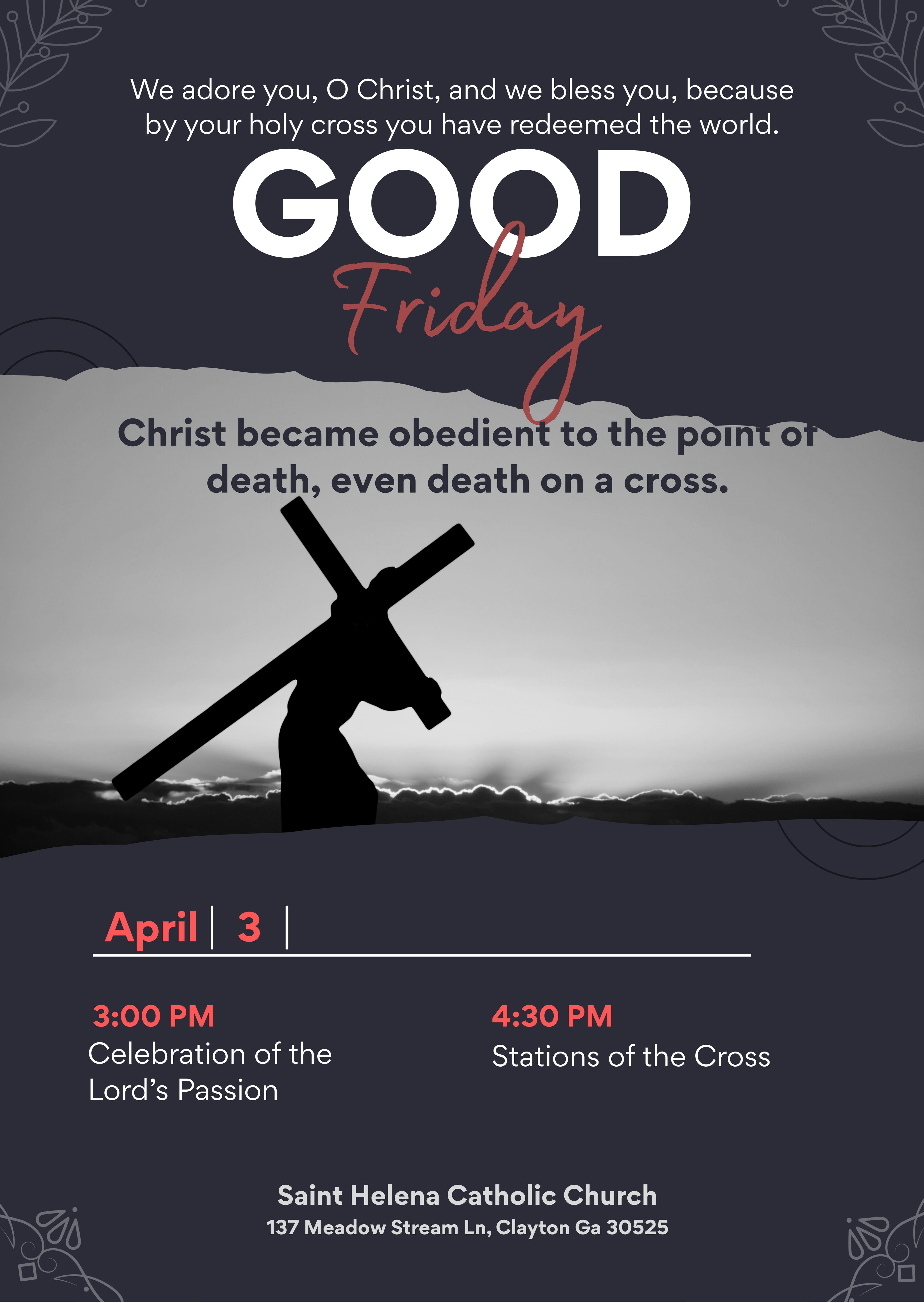 On Good Friday we solemnly commemorate Jesus’ Passion and death on the Cross. The Church celebrates the Liturgy of the Passion, venerates the Cross, and meditates on Christ’s sacrifice, offering prayer and fasting, uniting our sufferings with His redeeming love.